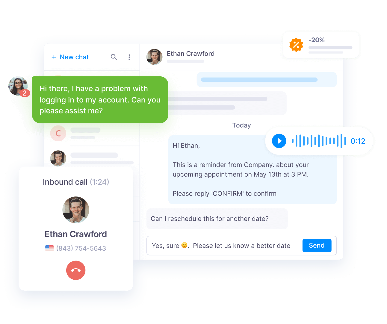 Easily engage with customers, leads, and staff through their mobile devices and their preferred business communication channels.